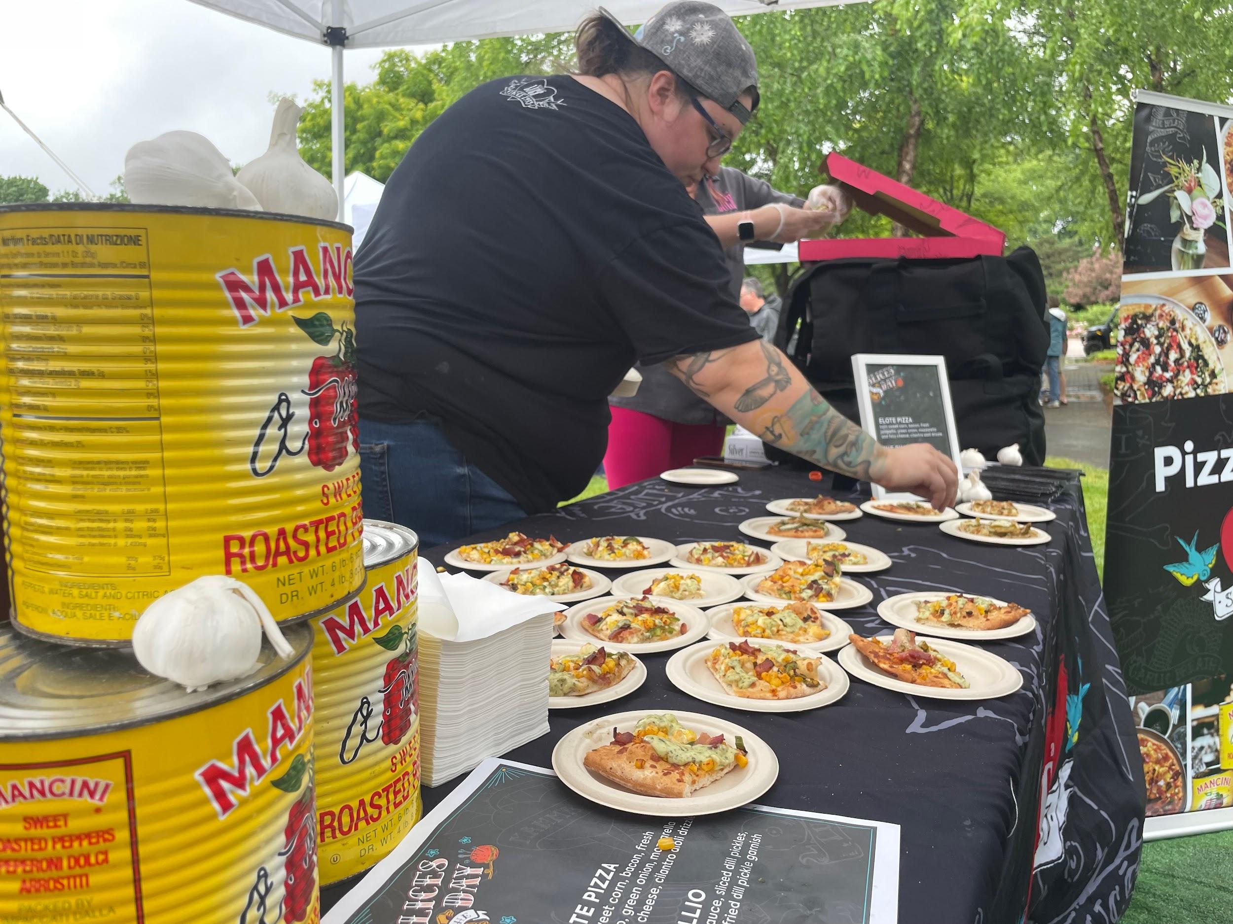 Pizza Luce’s booth, featuring their new dilio Pizza made with dill cream cheese, dill pickles, crispy cucumber on top, and lots and lots of fresh dill. Photo by Maya Betti.