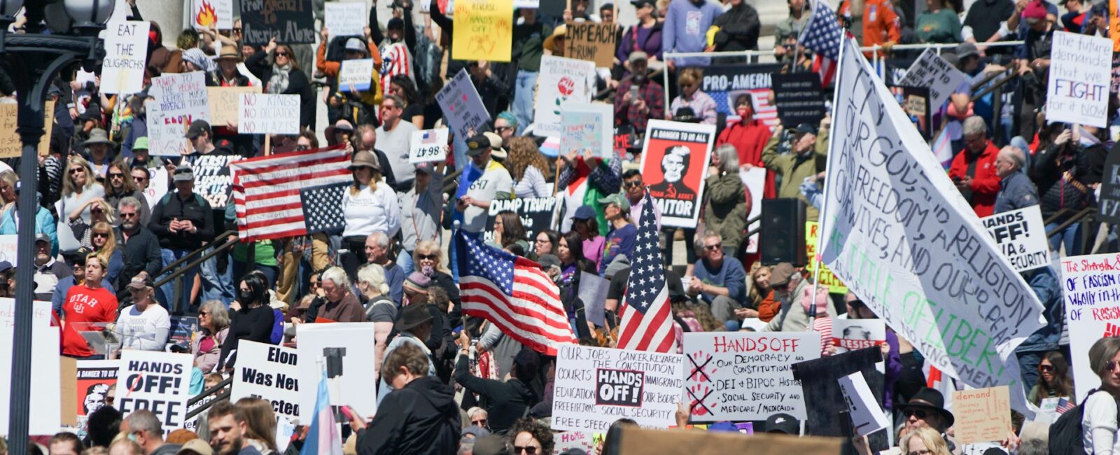 Utahns protest the actions of Donald Trump and Elon Musk outside the Utah State Capitol. Photo by Mike Newbry on Unsplash.