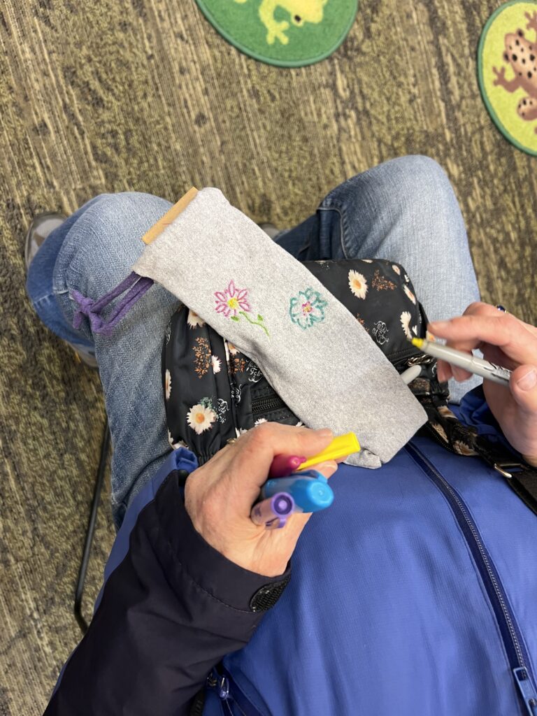 One of the most popular sustainability stations was the silverware pouches, which were made out of old t-shirts. Participants could choose a pre-sewn pouch, insert a strip of fabric as a tie closure and add their own design with permanent markers.