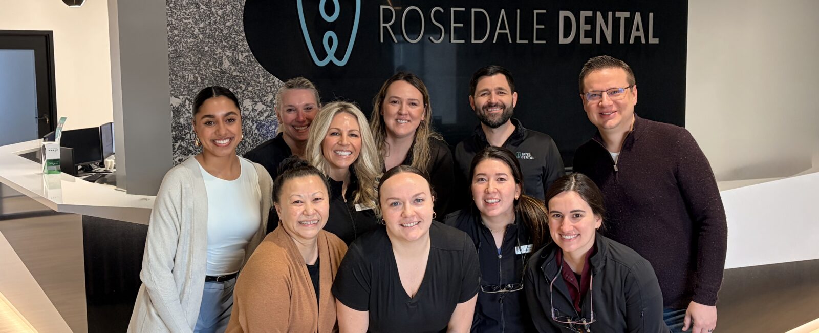Rosedale Dental staff pose with Drs. David Bates (back row, second from right), Katie Hannon (back row, third from left) and Isabella Tonarelli (first row, furthest right). Courtesy of Rosedale Dental.