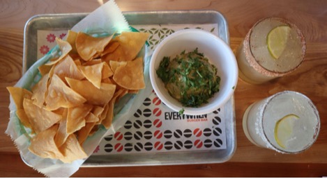 Centro’s chips and guacamole ($8), Quincy Margarita ($8) and Guava Margarita ($9).